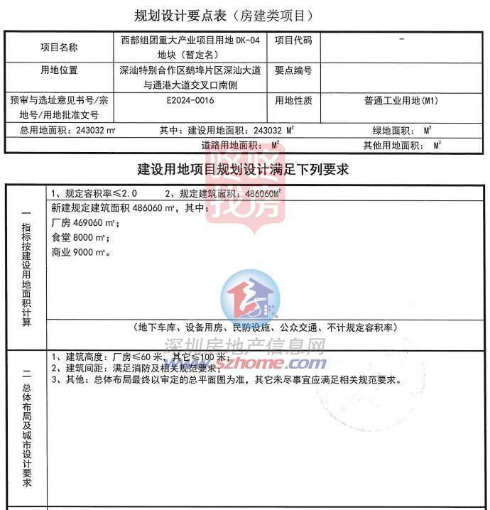 E2024-0016地块,新建规定建筑面积486060平方米,其中,厂房469060平方米,食堂8000平方米,商业9000平方米。