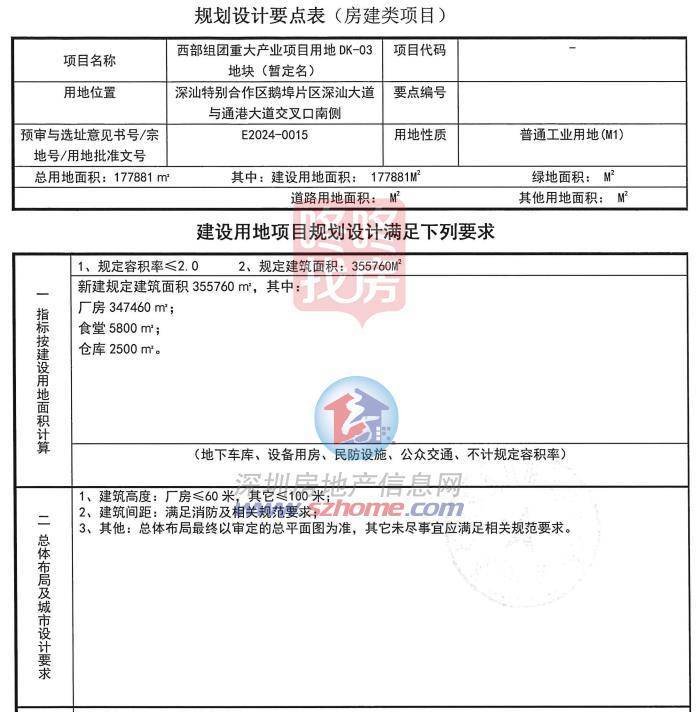 2022年12月,深圳市规划和自然资源局深汕管理局公示过深圳市深汕特别合作区西部组团重大产业项目选址及规划设计条件。
