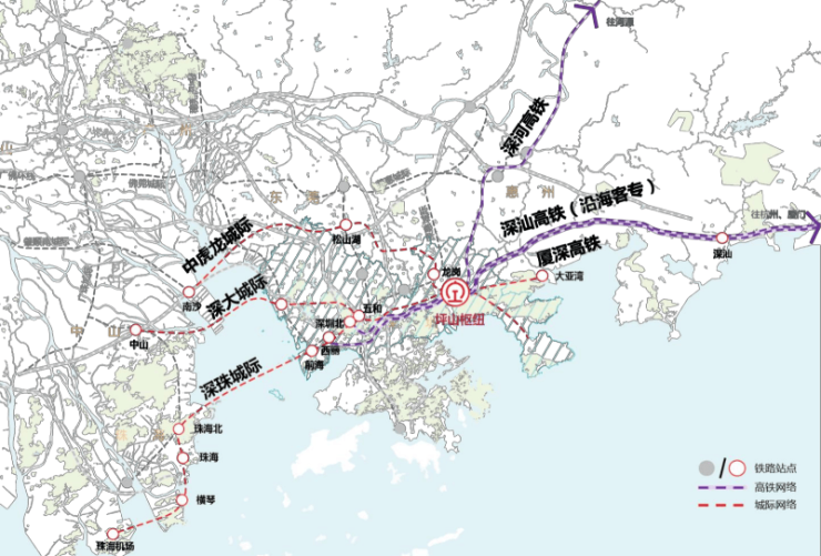 该枢纽服务于深圳东部坪山、龙岗、盐田、大鹏四区及惠州惠阳、大亚湾部分区域,辐射“深莞惠河发展轴”和“深惠汕发展轴”的东部门户节点,对于支撑和带动深圳市东部片区高质量发展、助力枢纽城市建设具有重要作用。