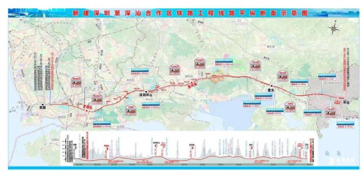 线路起于起自深圳枢纽西丽站,经深圳罗湖、坪山等区,惠州市至深汕特别合作区,引入在建广汕铁路深汕站。