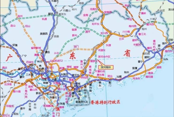 深河高铁为深圳东北向对外铁路通道,主要承担深圳地区与闽赣、长三角等华东地区中长途客流,兼顾深圳与惠州、河源的高速城际客运功能以及深圳与河源、梅州省内城际客流。