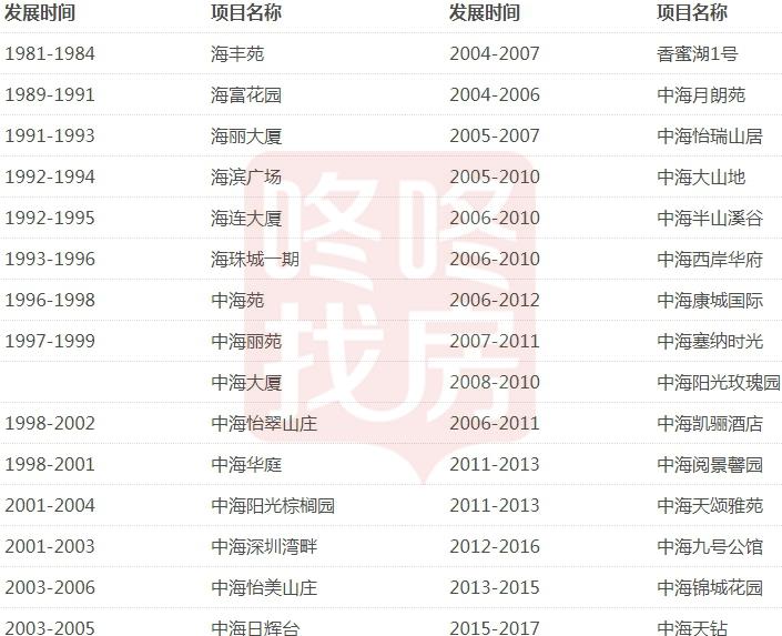 中海地产进入深圳较早,早在1981年便开始在深圳开发项目,截止到2017年开发了不下于30个项目。