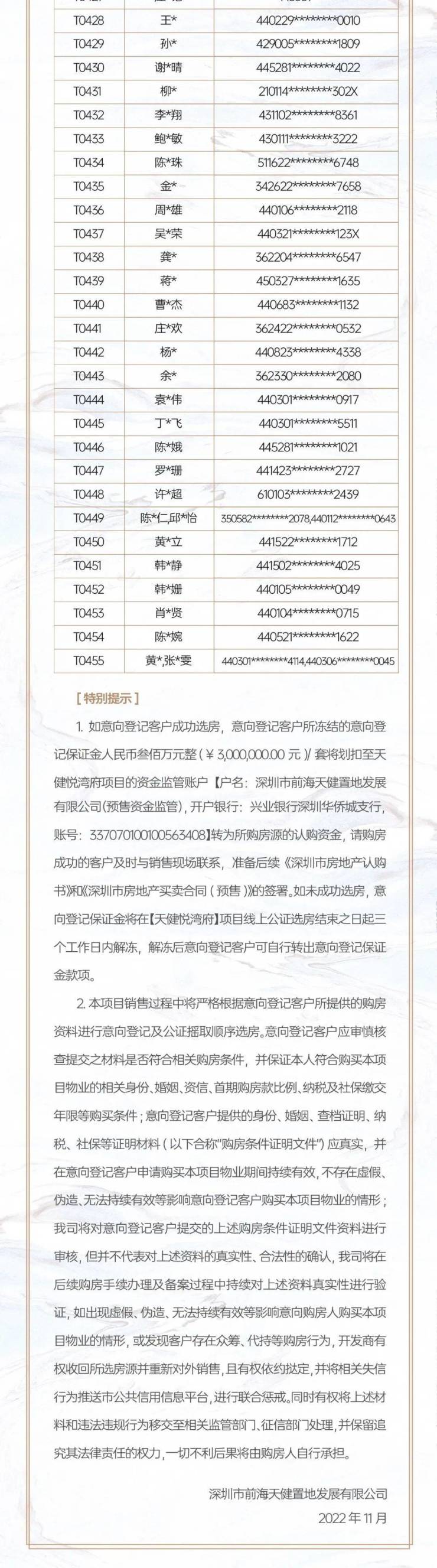 今日摇号!前海天健悦湾府发布登记名单,共登记455批!