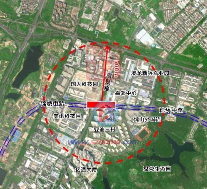 锦龙站是深圳轨道交通19号线一期工程第4座车站,位于坪山大道与荣昌路(体育二路)交叉口北侧,沿荣昌路南北向敷设,与既有地铁14号线锦龙站站厅换乘。