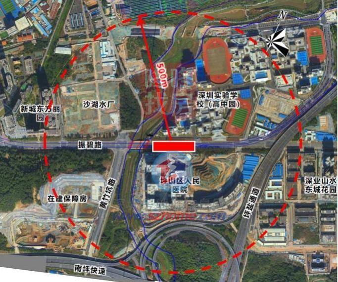 19 号线一期工程建设沙湖停车场,功能定位为本线停车场,北侧靠近同裕路,东侧紧挨沙湖复兴路,西侧毗邻黄竹坑 路,南侧毗邻汤坑水和在建夹圳岭南路。