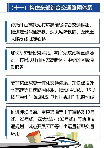 此外据了解,《意见》中提出,依托坪山高铁站打造高能级综合交通枢纽,推进建设深汕高铁、深大城际铁路、龙岗至大鹏支线城际铁路;并计划将坪山高铁站打造成集多功能为一体的综合性交通枢纽。