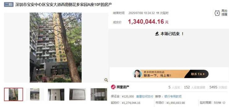 这套房源市场指导价是199万,起拍价从一拍的159万,降到二拍的127万。最终5位买家竞价12轮才成交。