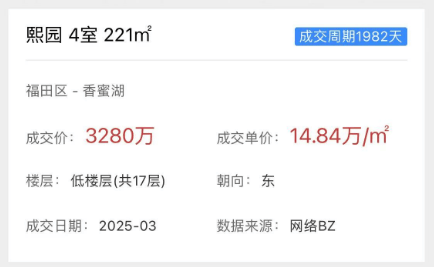 一套是位于位于香蜜湖的熙园,溢价超96%成交。