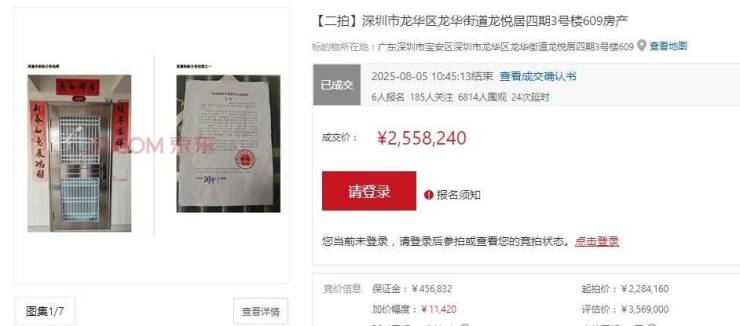 而原业主于2017年买入这套房,当时的登记价是1875.6万,本来法拍起拍价还不到购入价,成交价却直接让这套房的账面多出1558万。