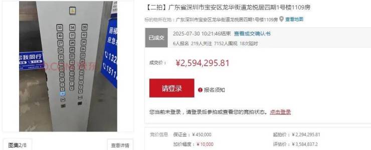 而在7月30日,小区同户型,二拍还能拍到259万。这才过几天,房价又创下了新低。