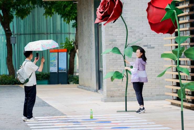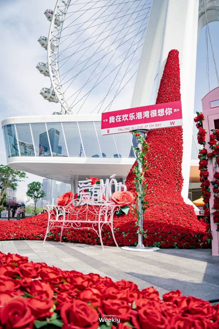 在深圳欢乐港湾,“湾区之光”摩天轮下出现了深圳最大的“玫瑰空中花园”、摩天轮广场大型玫瑰花海、情人节斑马线;在深圳欢乐海岸,彩虹天梯、喜帖街、相思树等半惊喜亮相;在顺德欢乐海岸PLUS,与中国邮政合作推出520玫瑰广场幸福邮筒……