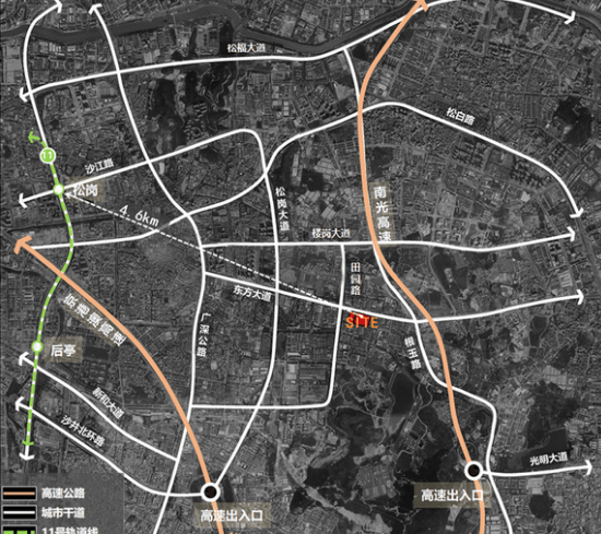 大田洋工业区东方三队、四队片区位于宝安区松岗街道田园路和东方大道交汇处东南侧。