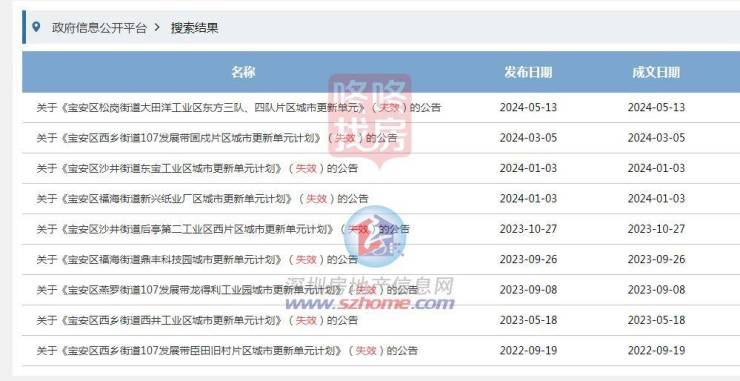 宝安又有1个旧改项目失效了,失效原因是:在计划有效期内更新单元规划未获市政府或其授权机构批准。