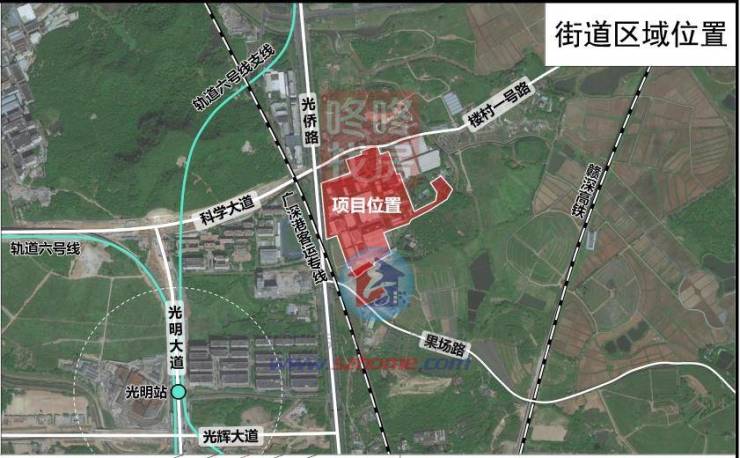 项目位于光明区新湖街道,城市主干道光侨路与现状楼村一号路交会处东南侧。