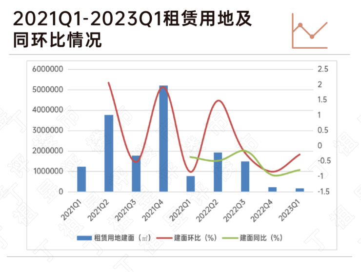 整个一季度,全国租赁相关用地成交同比下降了78.73%,在2022年四季度减少租赁相关用地供应的基础上,今年一季度进一步下滑,环比下降28.31%。租赁相关用地的供应成交开始呈现明显的下降趋势。