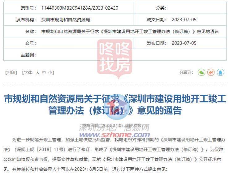 7月5日,深圳市规划和自然资源局发布《深圳市建设用地开工竣工管理办法(修订稿)》(以下简称办法),公开征求意见。