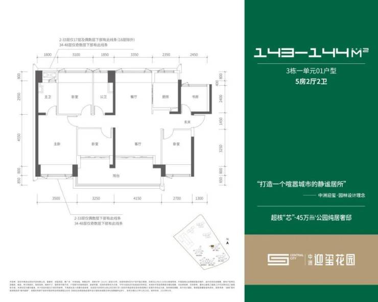 📌 144㎡4➕1房两卫(45套)