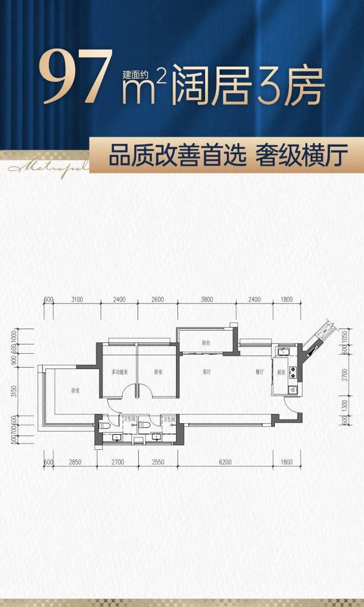 2月15日(本周六)将开放75-97㎡3房新品样板间。