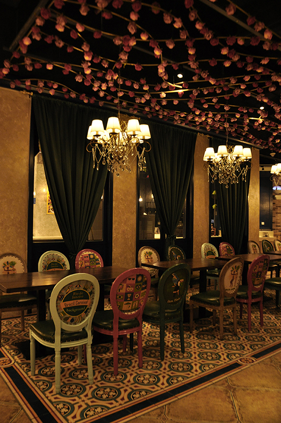 顾客还可以在店内买到云南空运而来的当季新鲜的蔬果食材;店内还有纸灯燃亮、彩色织锦作为装饰,具民族特色的环境体现了云南的风土印象,也打造出一张属于云海肴的鲜活名片,让消费者在钢筋水泥的城市中体验到七彩的云南文化。