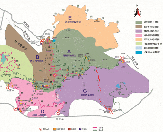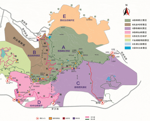 丨路线分解丨:梧桐山北门牌坊—梧桐山北路—凤凰台—小梧桐广场