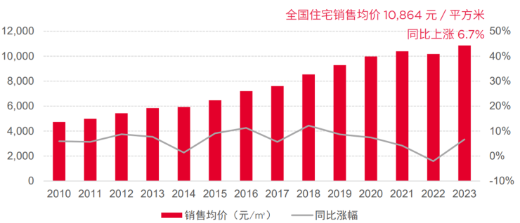成交结构影响下,2023年全国住宅销售均价同比上涨6.7%