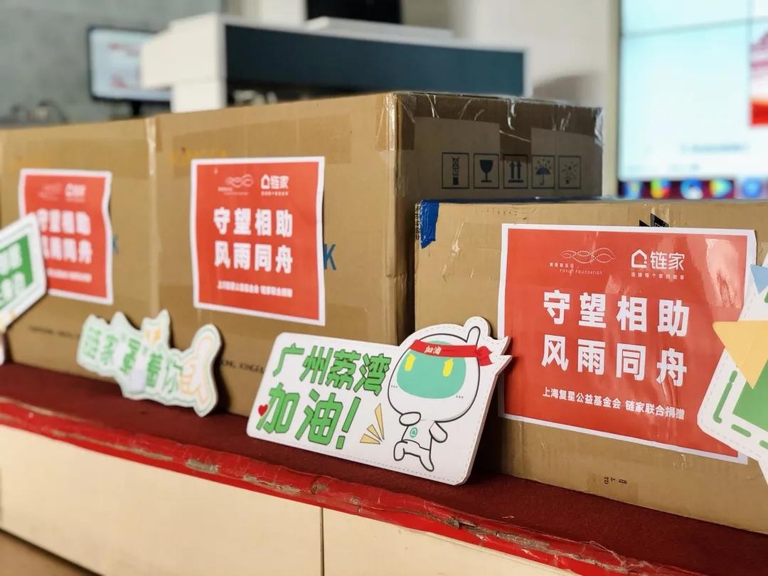 6月25日,一箱箱贴着“守望相助 风雨同舟”暖心祝福语的防疫物资,送达荔湾区各大街道社工站和社区服务中心,物资包含一次性医用口罩、N95口罩、儿童口罩、一次性手套和防疫包,其中口罩数量达到6万个,由广东链家、广州贝壳和复星基金会联合捐赠。这些捐赠物资将用于解决社区困难群体——环卫工人、空巢老人、低保户、残障人士等的日常防疫需求。