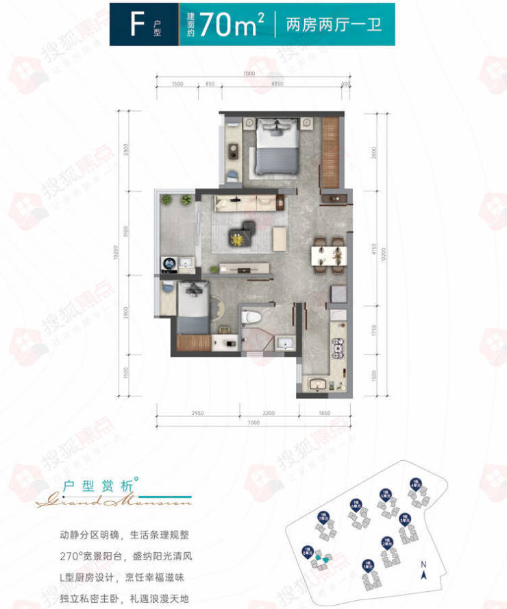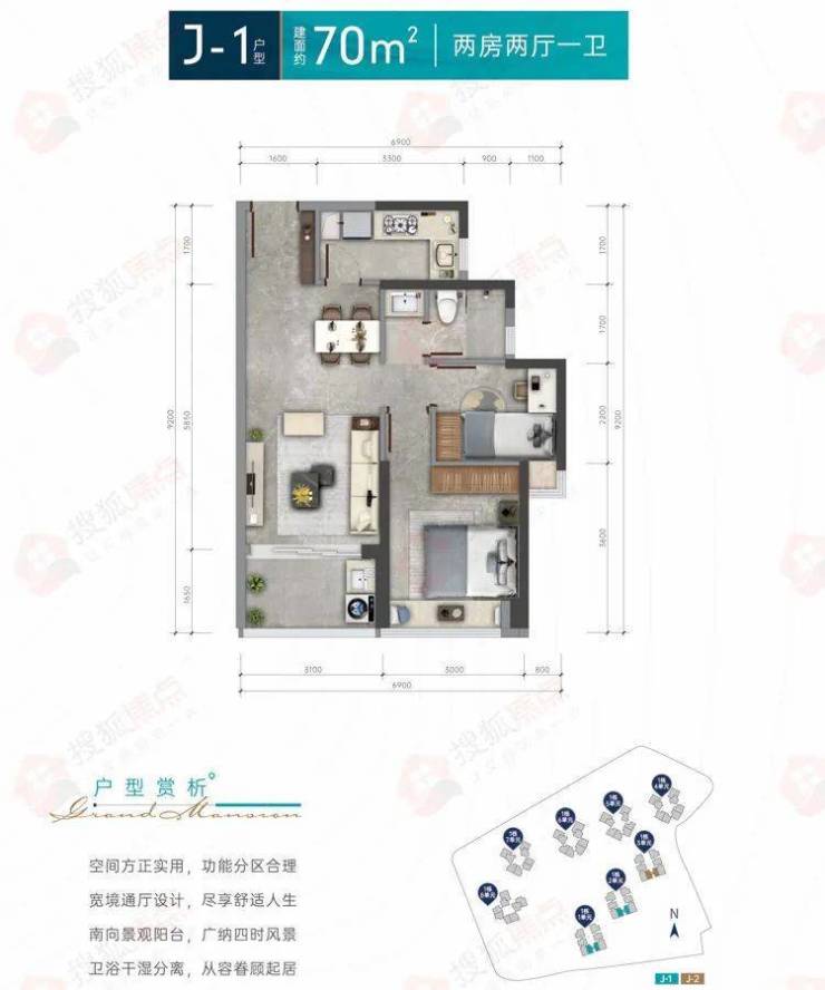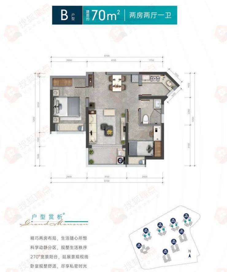 深铁熙府将推出的可售人才住房为户型建面约70-90㎡的2-3房单位,房源位于4栋、5栋1单元、5栋2单元、6栋及7栋部分房源,共2080套房源,其中70㎡2房约有1065套,90㎡3房约有1015套。