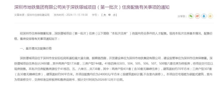 总价153万起,深铁璟城人才房启动配售!70-90平2-3房