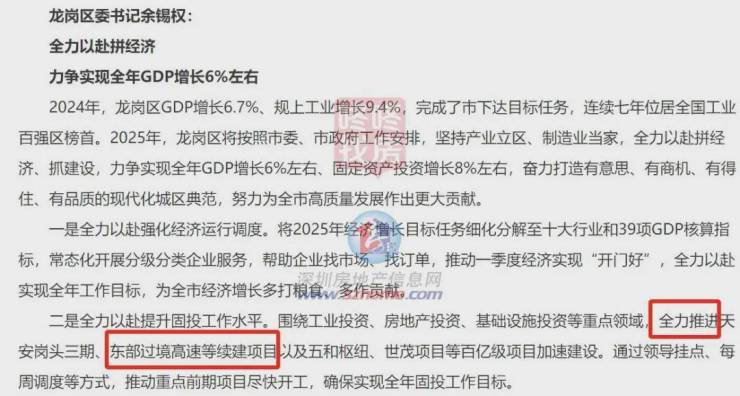 龙岗区在今年的政府报告的2025年工作安排中提到:“全力推进东部过境高速等续建项目”。