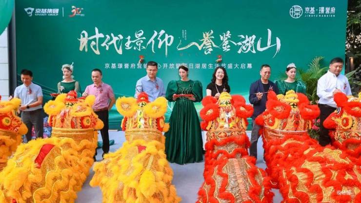 上午10:28,在祥狮、金龙的引导下,京基集团领导与特邀嘉宾手执彩带,拉开象征营销中心正式开放的幕布,礼炮绽响,标志深圳湖居新时代至此拉开帷幕,世界级藏品湖居闪耀面世,敬呈深圳塔尖圈层。