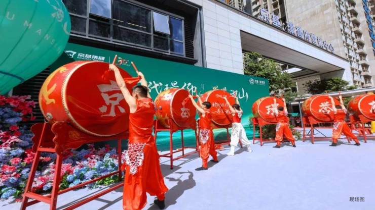 京基集团领导与特邀嘉宾持笔为祥狮点睛,在盛气磅礴的鼓舞声乐中,祥狮登高、献瑞,金龙翻腾起舞,精彩表演引得满场喝彩,现场气氛火速升温,涌动人潮印证城央湖山钜作的非凡热度。