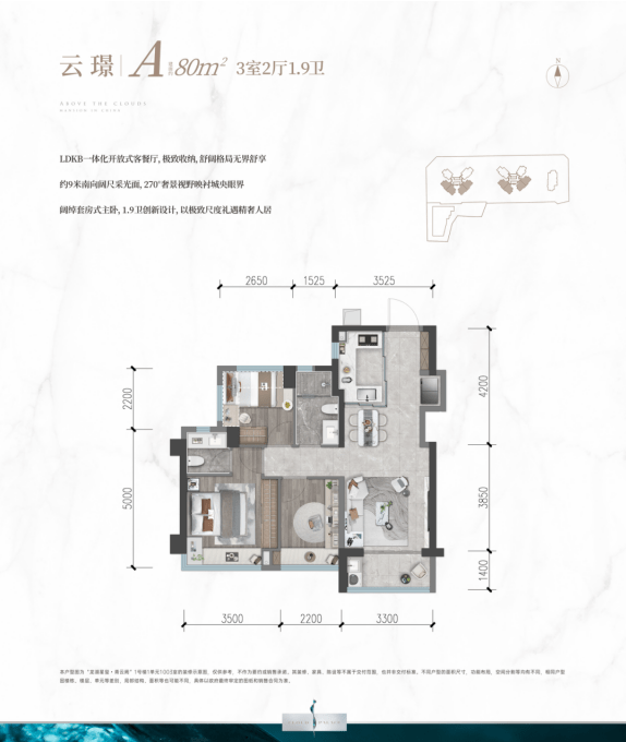 建面约80㎡3房2厅1.9卫,创新性打造出「1.9卫」,在有限的面积尺度里,满足了从容生活的可能性,交出了一份市场罕见的「高拓实用性」答卷。