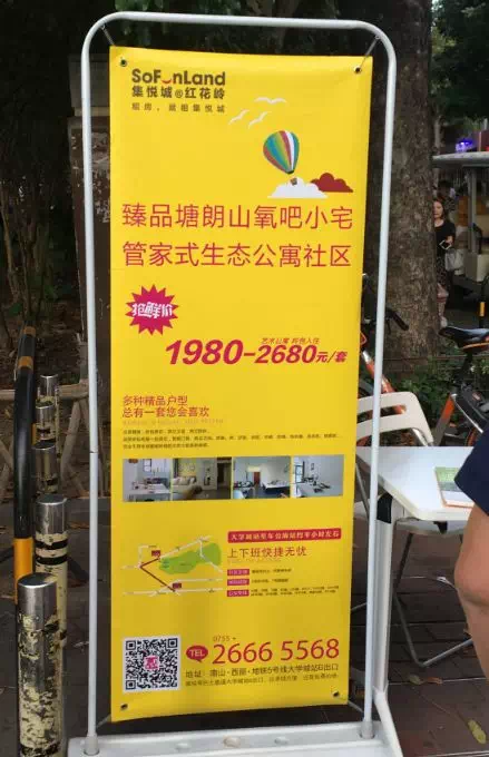 据悉,该项目分为塘朗城社区、红花岭社区,前海荔山社区。其中塘朗城社区又分为A、B区,记者先来到接待中心的B区,通过咨询周边商户,有商户向记者表示,“年底年初搬出去不少人,总看到物业带不少人看房,来来往往的,带物业费3000多,有人觉得物业费贵”。