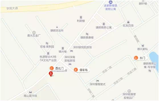集悦城位于南山区塘兴路,距离地铁5号线塘朗站约3公里。周边就是深圳大学城,还有清华大学甚至研究院、深圳大学西丽校区等,相比周边国家实验室、知名高校的外观设计时尚摩登,由于是厂房改造并处于改造期间,集悦城所处环境就显得有点嘈杂,从实地探访和地图可见,周边还有不少公寓、农民房、五金厂、塑胶制品厂。