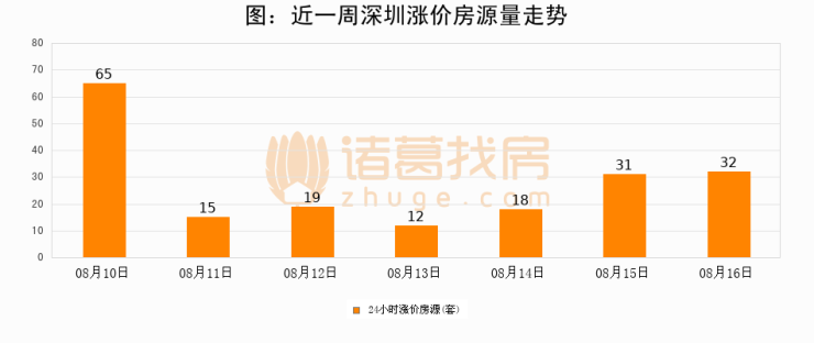 根据诸葛找房数据显示,深圳24小时涨价房源量为32套,较08月15日增加1套,环比上涨3.2%。与此同时,涨价房源占比小幅扩大,业主信心有所提升。