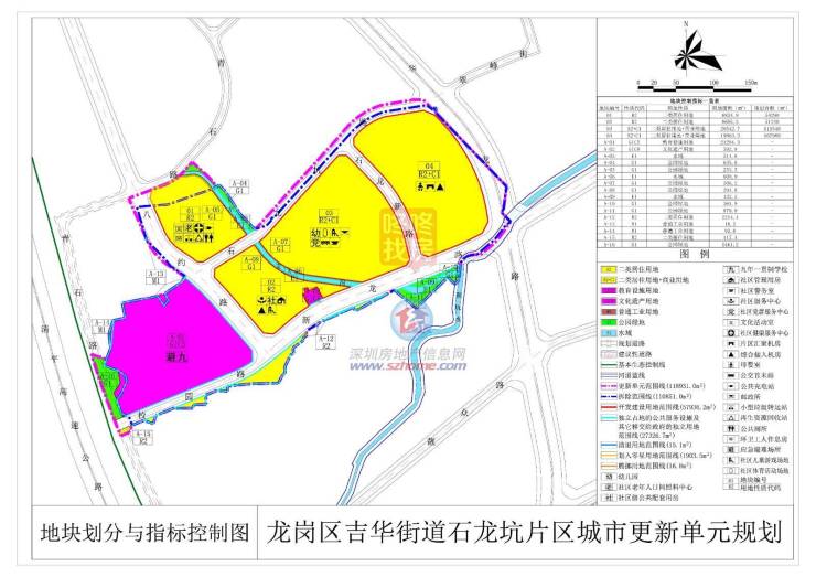 吉华街道石龙坑片区城市更新单元拆除约11万平方米,用地面积约8.77万方米。开发建设用地面积5.79万平方米,规划容积38.5万平方米,其中住宅25.6万平方米;商业、办公及旅馆业建筑10.92万平方米等。拆除范围内规划有一所九年一贯制学校。