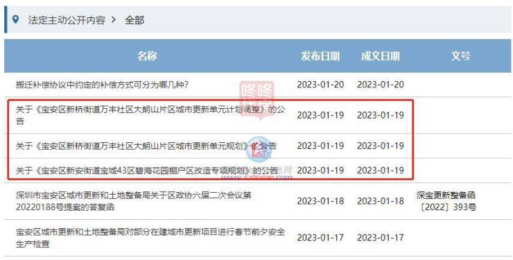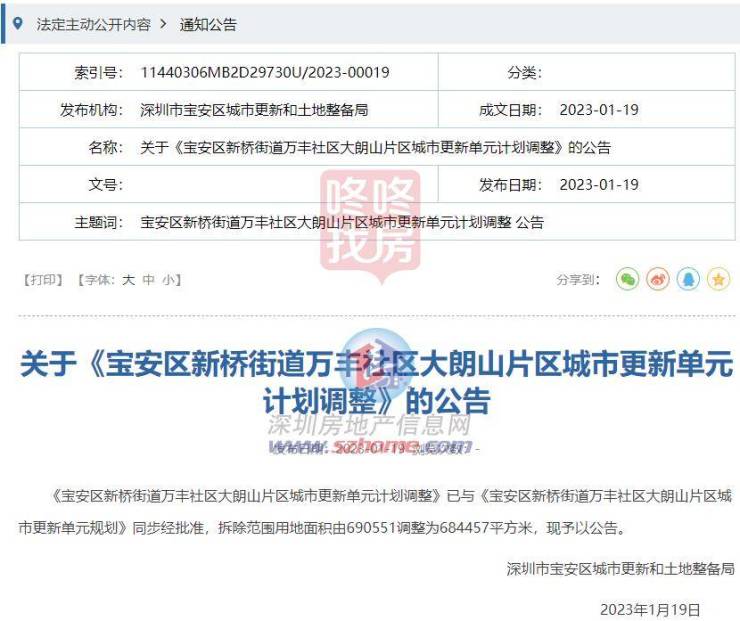 另外,《宝安区新桥街道万丰社区大朗山片区城市更新单元计划调整》也在同天发布。