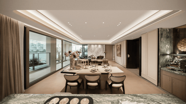 2025年12月首批推售1栋小高层住宅,建面约197㎡/237㎡大平层,仅40套,为片区内稀缺的约90米纯板楼,两梯两户专梯入户,新规户型高赠送,含电梯厅综合赠送后使用率可达93-95%。以“新规户型+纯板楼设计”为核心,采用“框架结构+内部可拆改”的营造方式,打造堪称深圳湾片区难得的“全生命周期豪宅”。