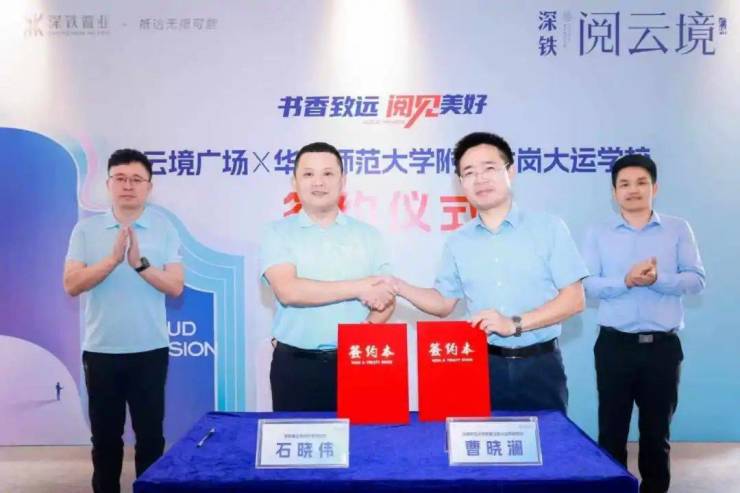 11月9日,一场以“书香致远 阅见美好”为主题的教育签约仪式在深铁阅云境展示中心成功举办。会上,阅云境广场与华南师范大学附属龙岗大运学校(简称:华附大运学校)的成功合作签约,将深铁成熟“轨道+教育”理念与华附大运学校充满活力的现代教育模式相结合,在特色创新教育上展开深度合作,打造大运TOD优质教育的典范,现场吸引众多家长朋友关注,座无虚席。