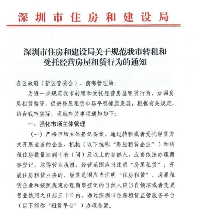 重磅,深圳明确二房东也要备案,设监管账户!住建官宣规范政策