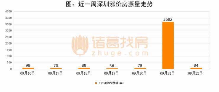 根据诸葛找房数据显示,深圳24小时涨价房源量为84套,较09月21日减少3598套,环比下降97.7%。与此同时,涨价房源占比小幅回落,对于购房者来说是一个入市窗口期,购房者可抓住时机入市。