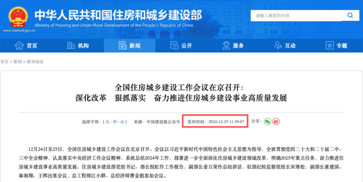 2025年12月22日至23日,全国住房城乡建设工作会议在北京召开。