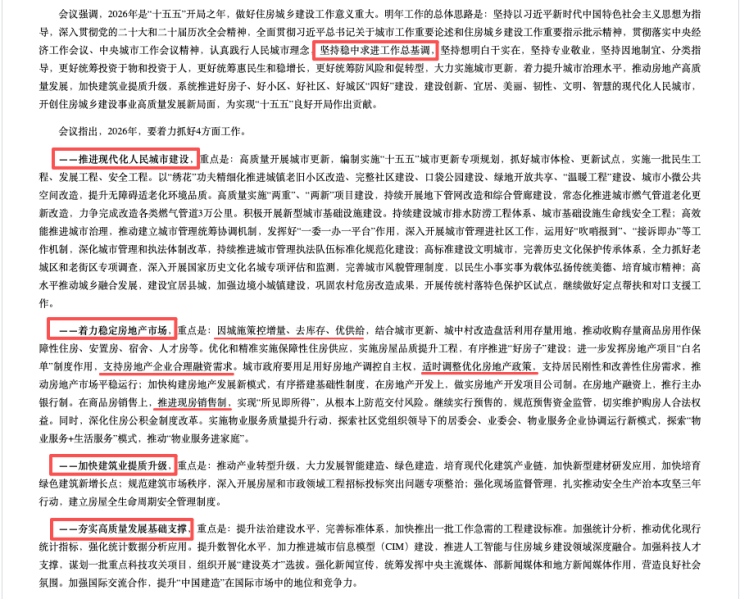 住建部会议强调,2026年是“十五五”开局之年,做好住房城乡建设工作意义重大。