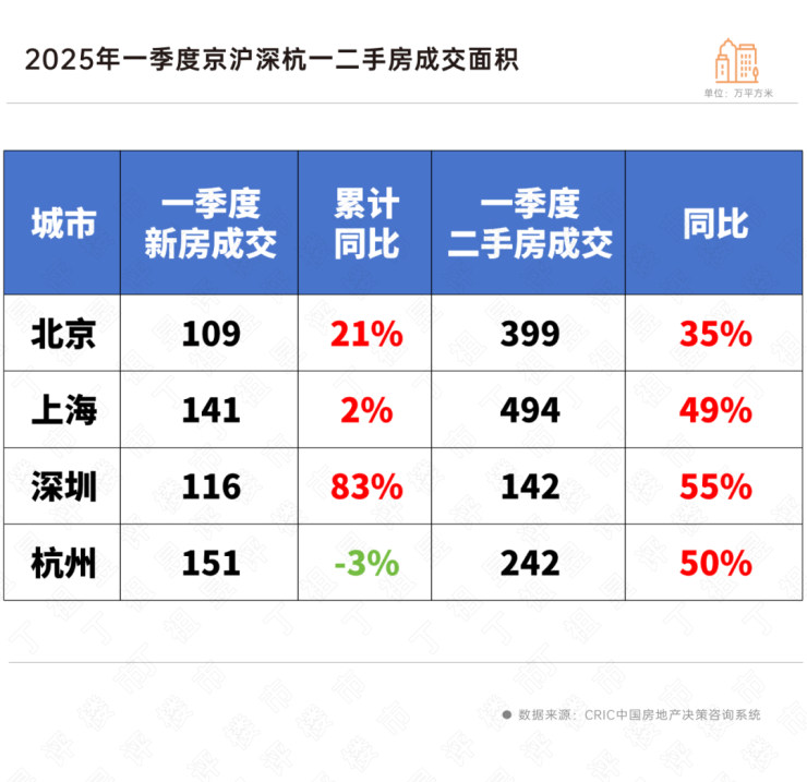 据CRIC监测数据,2025年1季度30个重点城市二手房成交同比上涨2成以上,增幅显著好于新房。热点恒热的北京、上海、深圳和杭州同比涨幅超35%显著好于30城平均水平。