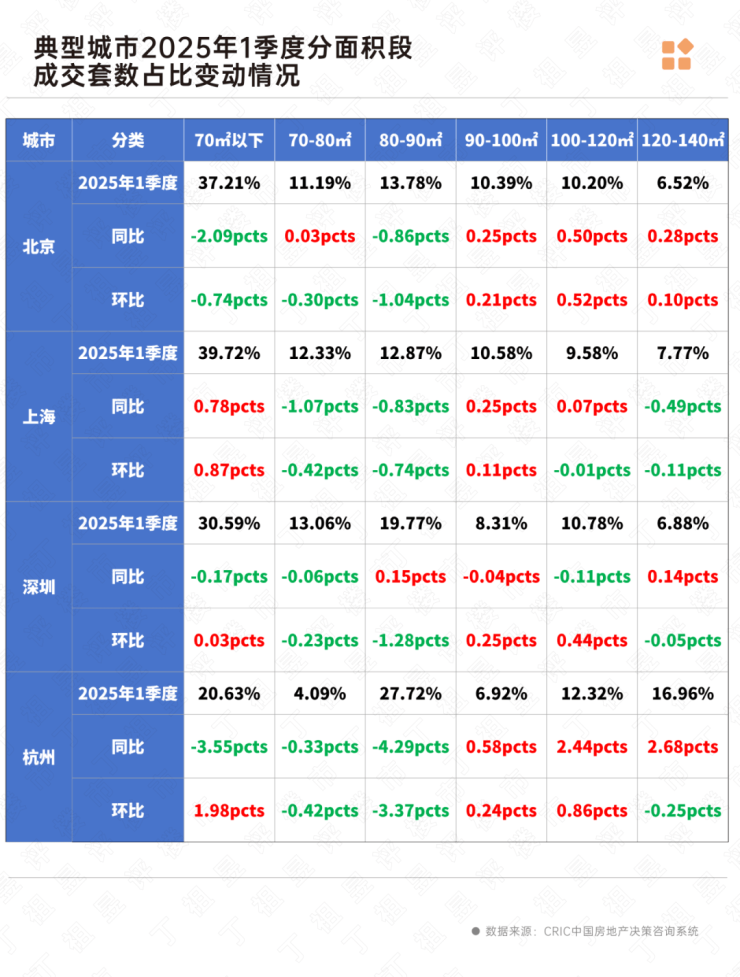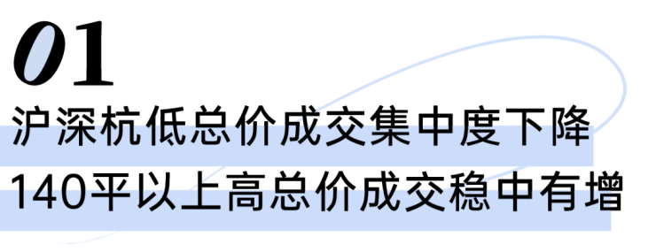 其中,京深杭90-140平成交占比环比持增,更多家庭追求“一步到位”,而70-90平中等面积段跌幅最为明显。