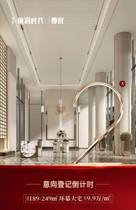 目前,深铁前海时代尊府诚意登记倒计时,仅有270席建面约189-249㎡环幕大宅,有豪宅改善需求的购房者千万别错过,抓紧时间前往项目营销中心了解!