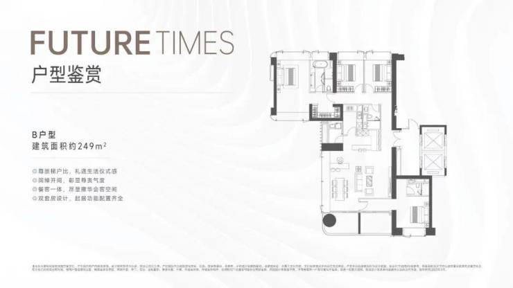 深铁前海时代尊府所推产品为建面约189-249㎡纯粹大平层,为了给业主雕琢出更好的生活方式,在城央享受人居藏品生活,开发商十分精心的打磨每一处细节。