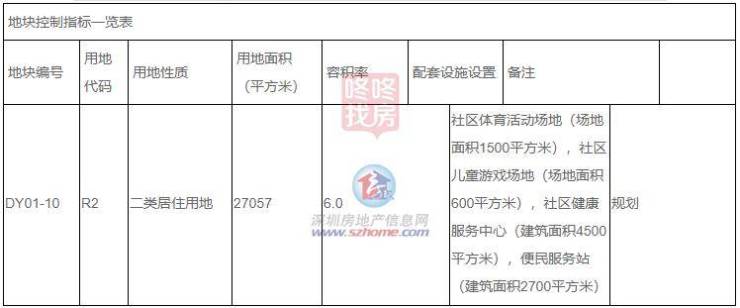 DY01-10地块细化后,用地性质二类居住用地,用地面积27057平方米,容积率6.0,配套设施设置社区体育活动场地(场地面积1500平方米),社区儿童游戏场地(场地面积600平方米),社区健康服务中心(建筑面积4500平方米),便民服务站(建筑面积2700平方米)。