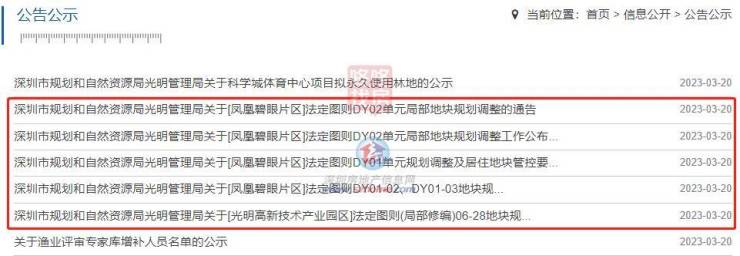 3月20日,深圳市规划和自然资源局光明管理局发布多个地块规划调整公告。