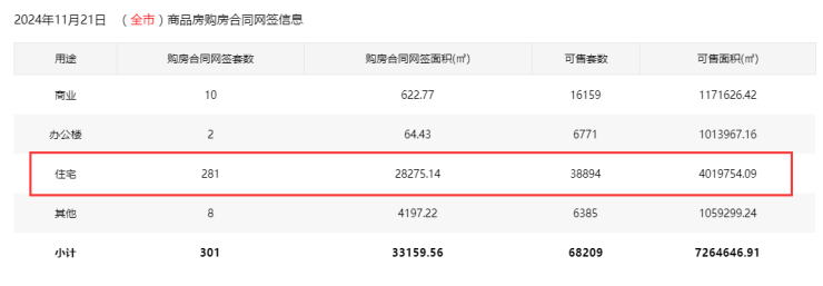 11月21日深圳新房住宅合同网签281套 二手房住宅成交299套